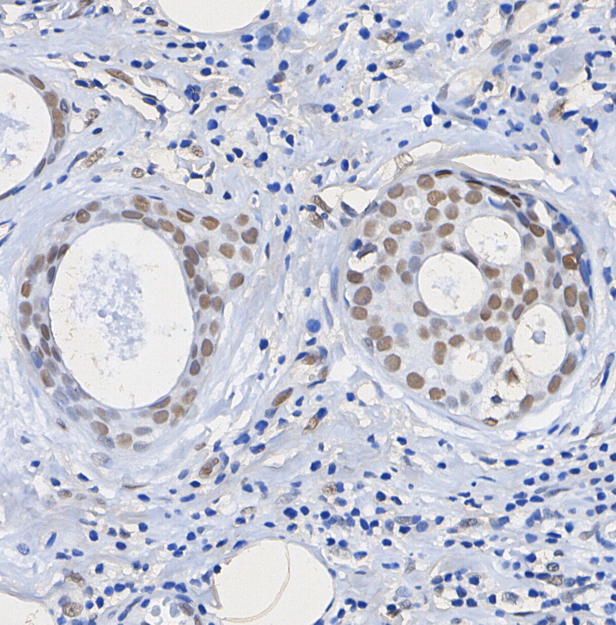 • Immunohistochemical analysis of formalin fixed paraffin embedded human Breast cancer tissue with F0688 at 1/100 dilution.