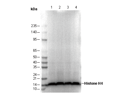 Histone H4 Antibody [E13F18] recognizes endogenous levels of total histone H4 protein. This antibody does not cross-react with other histone proteins.