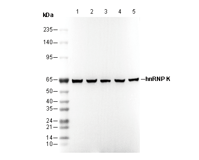 hnRNP K Antibody [K21N19] recognizes endogenous levels of total hnRNP K protein.