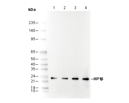 HP1β Antibody [K15D8] recognizes endogenous levels of total HP1β protein. This antibody does not cross-react with other HP1 proteins, including HP1α and HP1γ.