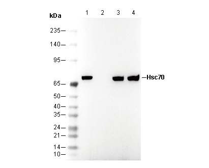Hsc70 Antibody [K23K6] recognizes endogenous levels of total Hsc70 protein.