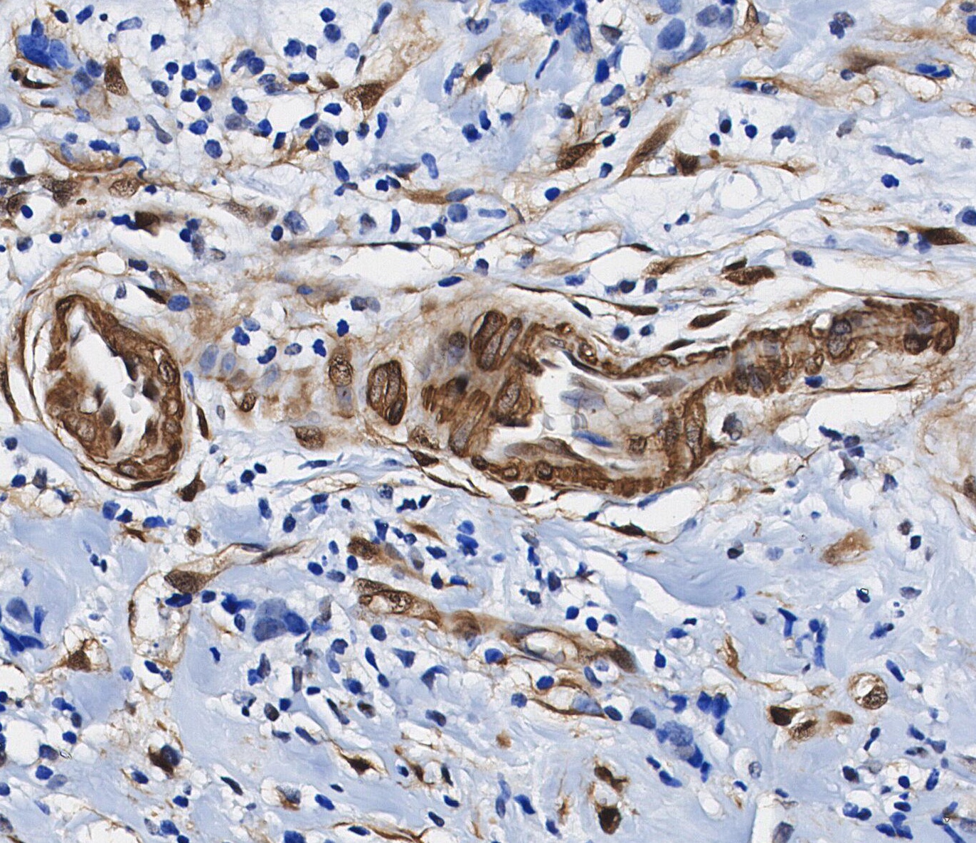 • Immunohistochemical analysis of formalin fixed paraffin embedded human Breast Cancer tissue with F1336 at 1/100 dilution.