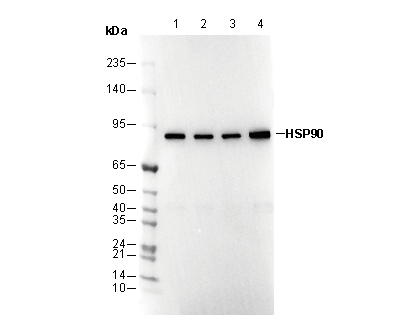 HSP90 Antibody [L2G2] detects endogenous levels of total HSP90 protein.