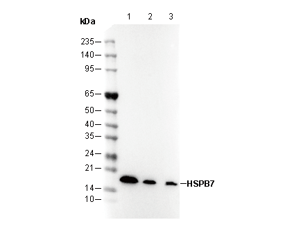 HSPB7 Antibody [P12B13] recognizes endogenous levels of total HSPB7 protein.