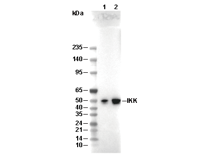 • Lane 1: HeLa, Lane 2: HeLa (TNF-α, 20 ng/ml; Calyculin A, 50 nM)