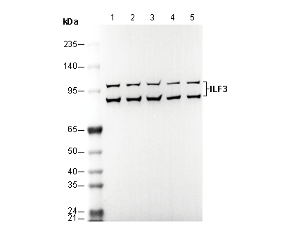 • Lane 1: Raji , Lane 2: SH-SY5Y , Lane 3: HeLa , Lane 4: Neuro-2a , Lane 5: C6