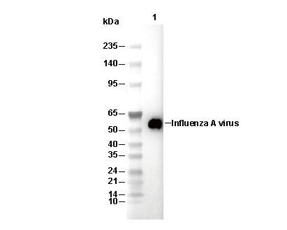Influenza A virus (H5N1/HA1) Antibody [L10F5] detects exogenous levels of total Influenza A virus (H5N1/HA1) protein.