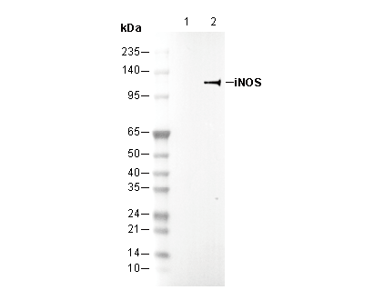 This antibody recognizes the iNOS protein. The basal expression level of iNOS is low in most cells or tissues, and clear bands are only visible after stimulation. Therefore, it is recommended to stimulate the samples during preparation to observe clear bands.