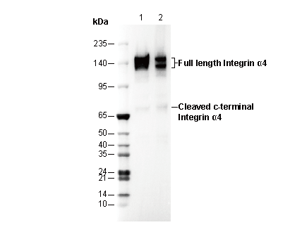 Integrin α4 Antibody [L4P6] recognizes endogenous levels of total integrin α4 protein.