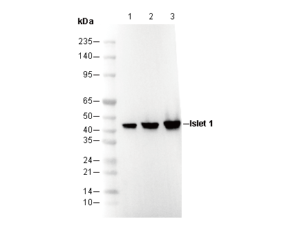 Islet 1 Antibody [M20C8] detects total endogenous levels of Islet 1 protein.