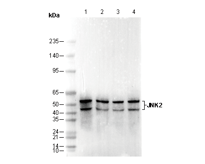 JNK2 Antibody [J8J7] detects endogenous levels of total JNK2 protein. This antibody does not recognize JNK1 or JNK3 protein.