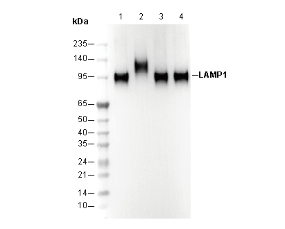 LAMP1 Antibody [C20P18] recognizes endogenous levels of total LAMP1 protein.