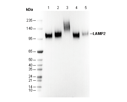 LAMP2 Antibody [J13L13] recognizes endogenous levels of total LAMP2 protein.