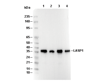 LASP1 Antibody [F4B5] recognizes endogenous levels of total LASP1 protein.