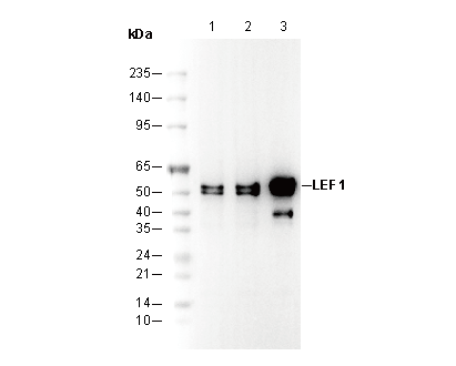 LEF1 Antibody [H23P20] detects endogenous level of total LEF1 protein. It does not recognize the dominant negative forms of LEF1 generated by an alternative promoter.