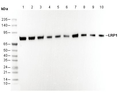 LRP1 Antibody [M9L8] detects endogenous levels of total LRP1 protein.
