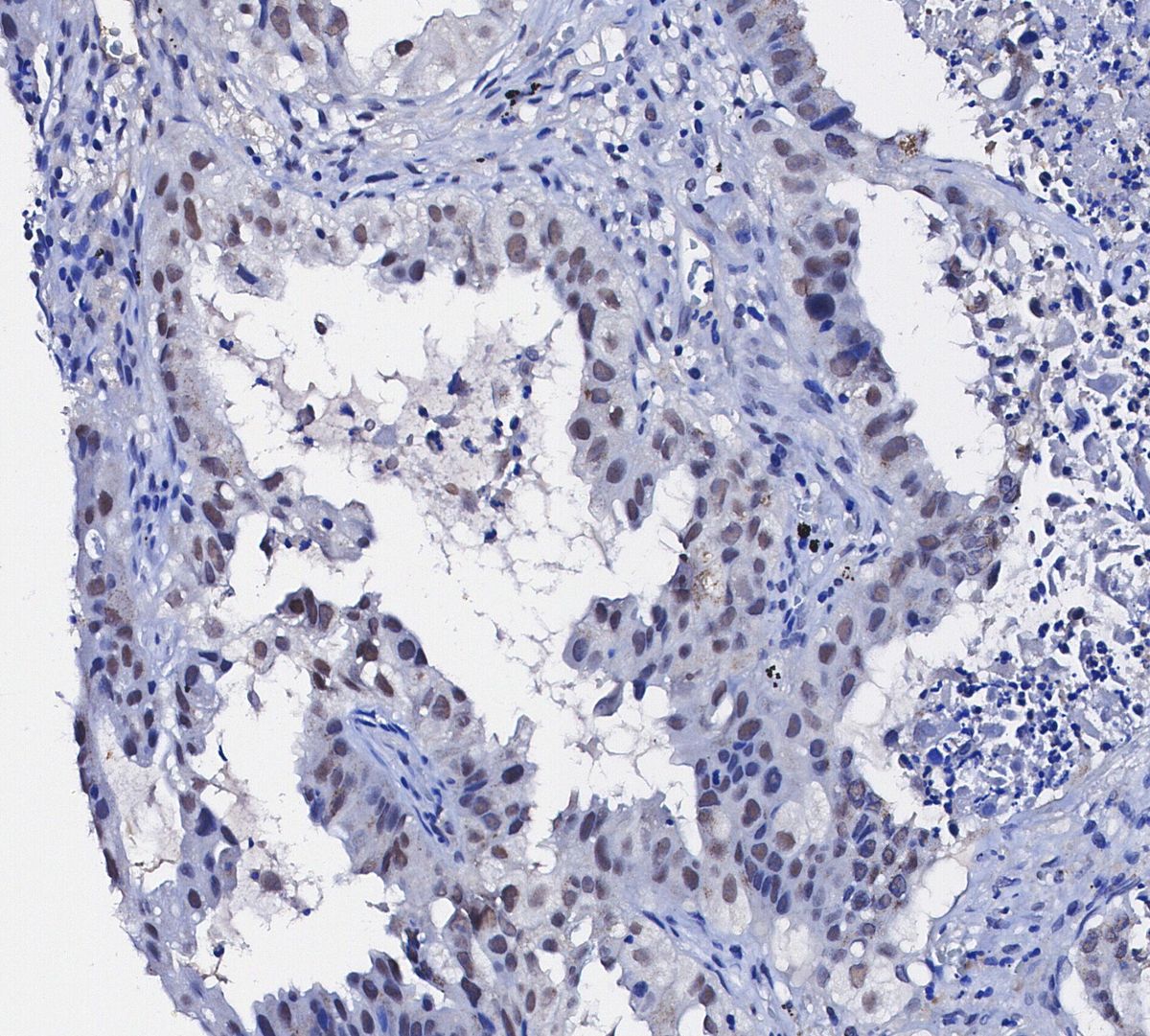 • Immunohistochemical analysis of formalin fixed paraffin embedded human Lung adenocarcinoma tissue with F0438 at 1/100 dilution.