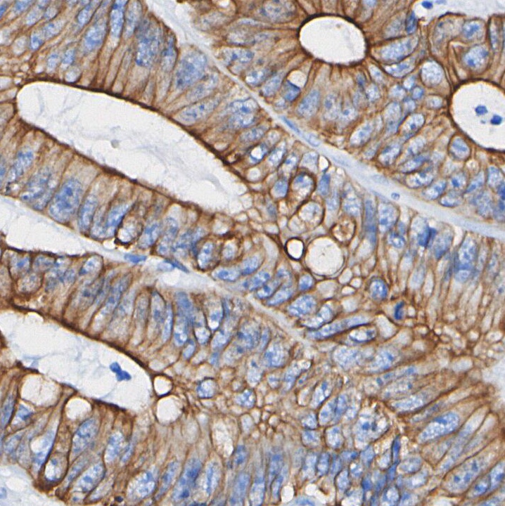 • Immunohistochemical analysis of formalin fixed paraffin embedded human Colorectal cancer tissue with F1093 at 1/100 dilution.