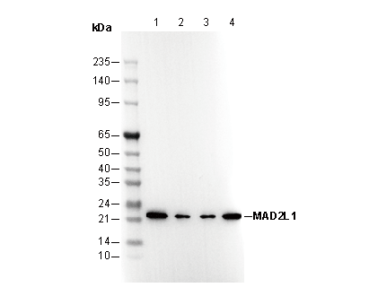 MAD2L1 Antibody [P22B18] recognizes endogenous levels of total MAD2L1 protein.