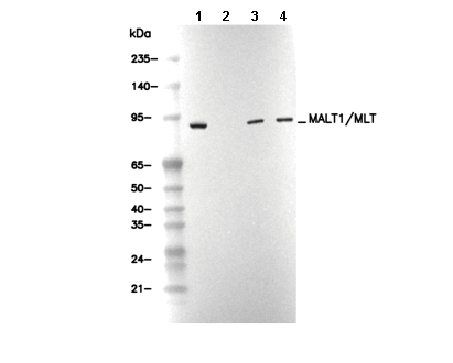 MALT1/MLT Antibody [P2K2] detects endogenous levels of total MALT1/MLT protein.
