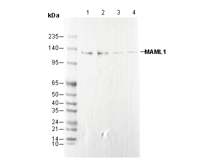 MAML1 Antibody [K3L16] recognizes endogenous levels of total MAML1 protein.