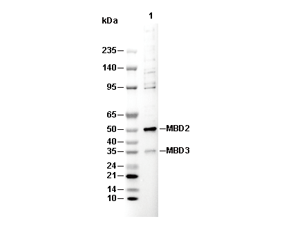 MBD2 + MBD3 Antibody [F1H19] detects endogenous levels of total MBD2 + MBD3 protein.