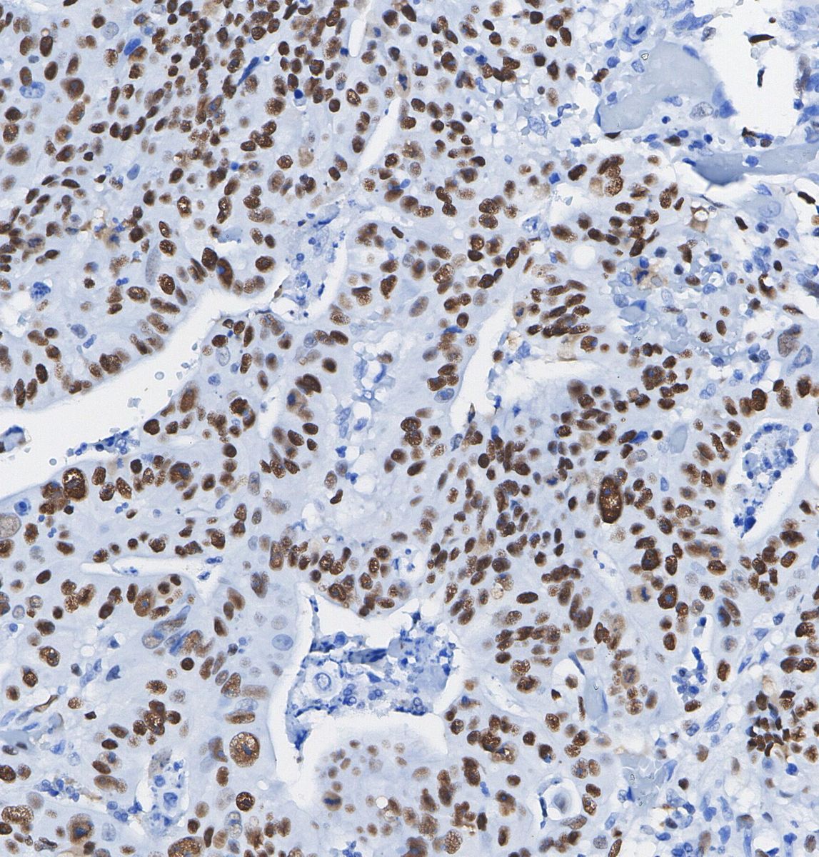 • Immunohistochemical analysis of formalin fixed paraffin embedded human Colorectal cancer tissue with F1235 at 1/50 dilution.