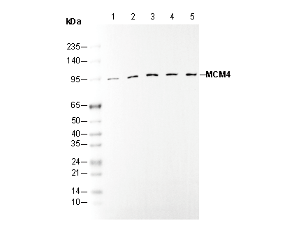 MCM4 Antibody [L9M20] recognizes endogenous levels of total MCM4 protein.