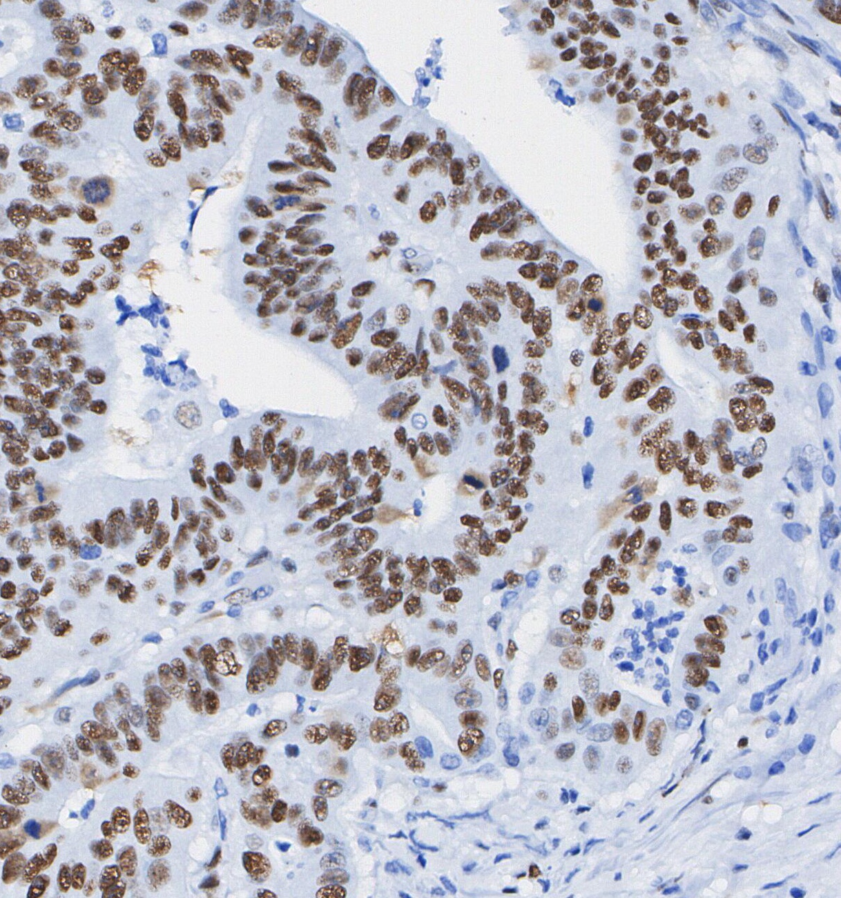 • Immunohistochemical analysis of formalin fixed paraffin embedded human Colorectal cancer tissue with F0895 at 1/100 dilution.