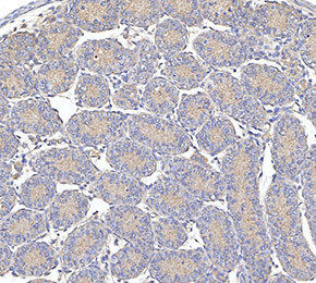 • Immunohistochemical analysis of formalin fixed paraffin embedded mouse testicles tissue with F3225 at 1:10 dilution.