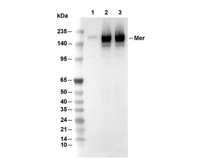 Mer Antibody [D4A12] detects endogenous levels of total Mer protein.
