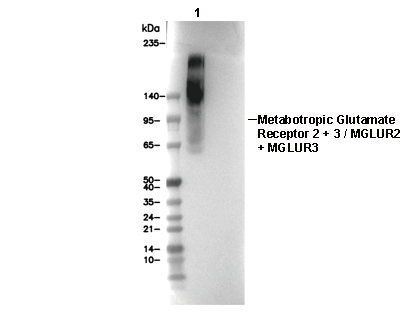 Metabotropic Glutamate Receptor 2 + 3 Antibody [K11L17] detects endogenous levels of total Metabotropic Glutamate Receptor 2 and 3 protein.