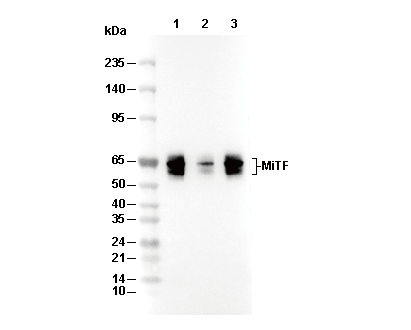 MiTF Antibody [B21F15] detects endogenous levels of total MiTF protein.