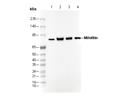 Mitofilin Antibody [F2H12] recognizes endogenous levels of total mitofilin protein.