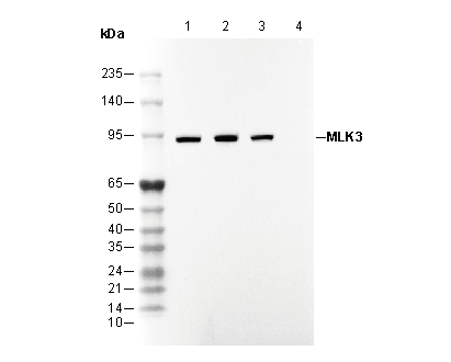 MLK3 Antibody [J1G10] recognizes endogenous levels of total MLK3 protein.