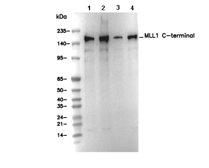 MLL1 C-terminal Antibody [P8P8] recognizes endogenous levels of total MLL1-C protein.