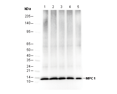 MPC1 Antibody [B18J20] recognizes endogenous levels of total MPC1 protein. This antibody does not cross-react with MPC2 protein.