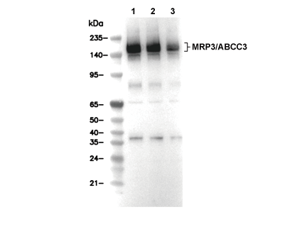 MRP3/ABCC3 Antibody [L20F24] detects endogenous levels of total MRP3/ABCC3 protein.