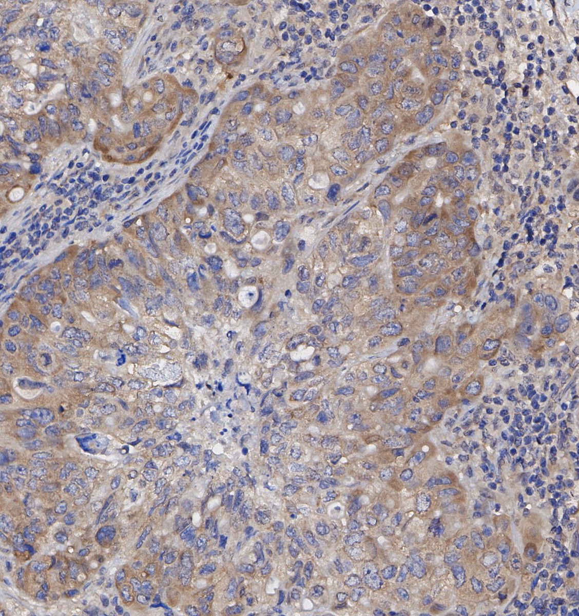 • Immunohistochemical analysis of formalin fixed paraffin embedded human Lung adenocarcinoma tissue with F1651 at 1/100 dilution.