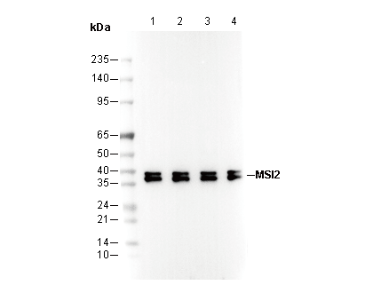 MSI2 Antibody [E24A22] detects endogenous levels of total MSI2 protein.