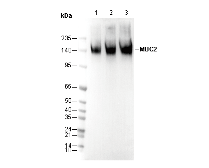 MUC2 Antibody [E19C19] recognizes endogenous levels of total muc2 protein.