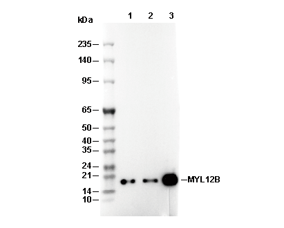 MYL12B Antibody [G5A11] recognizes endogenous levels of total MYL12B protein.