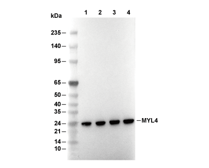 MYL4 Antibody [K10N17] detects endogenous levels of total MYL4 protein.