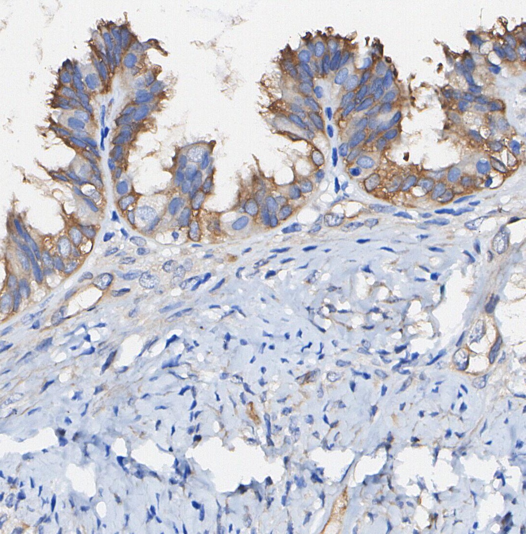 • Immunohistochemical analysis of formalin fixed paraffin embedded human Ovarian Cancer tissue with F0692 at 1/100 dilution.