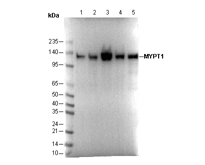 MYPT1 Antibody [L13E8] recognizes endogenous levels of total MYPT1 protein.