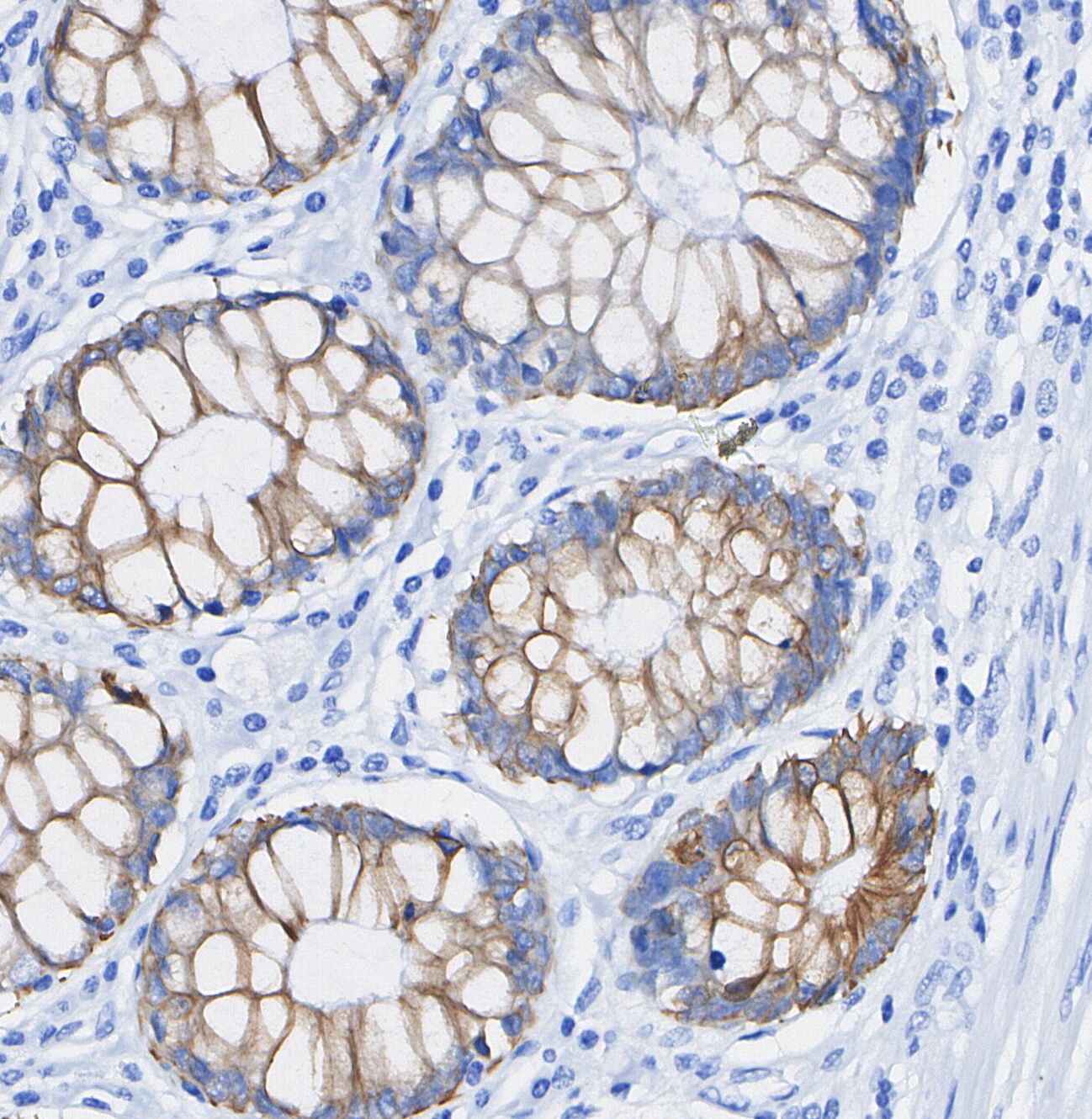 • Immunohistochemical analysis of formalin fixed paraffin embedded human Colorectal cancer tissue with F0739 at 1/100 dilution.