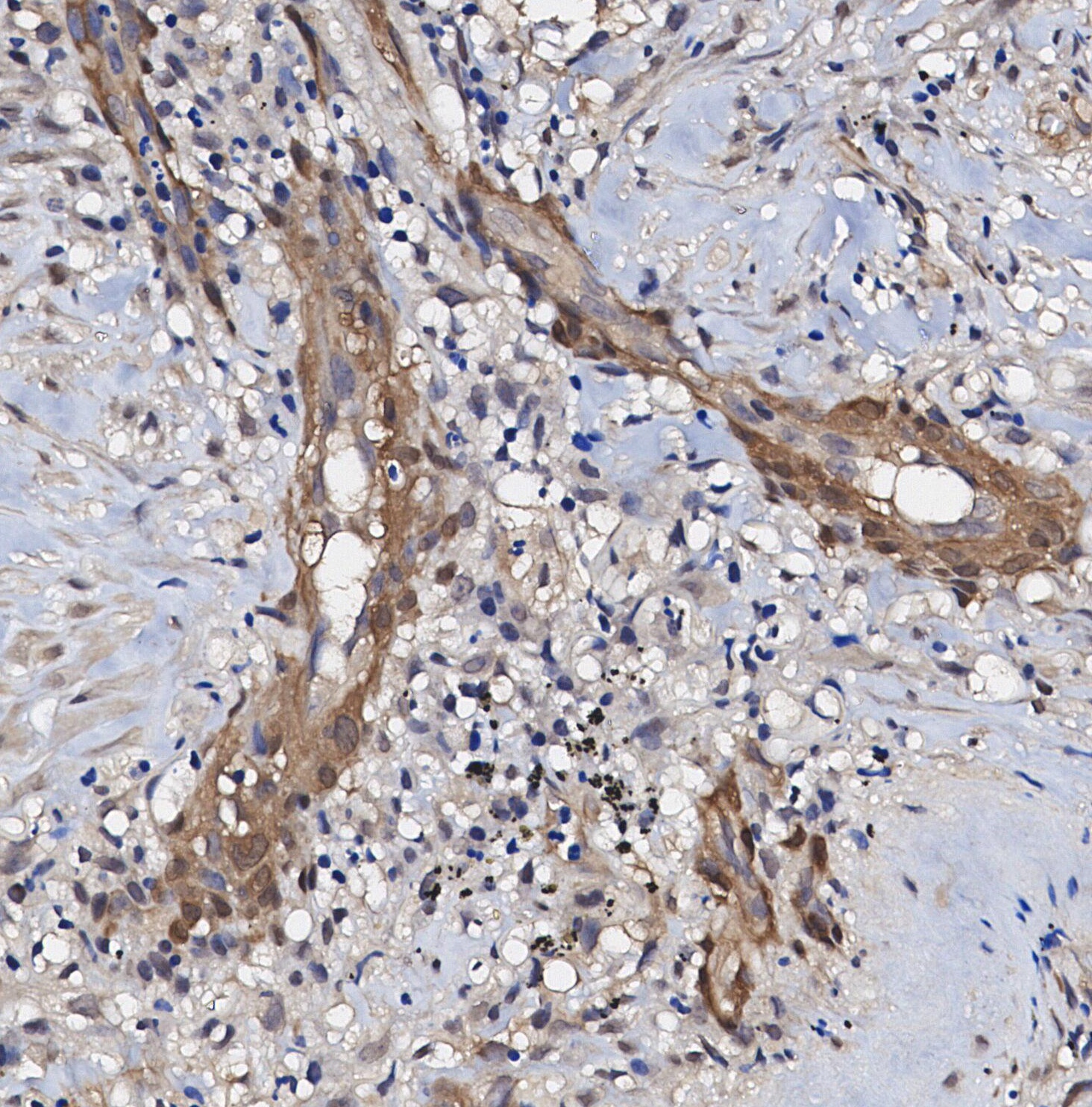 • Immunohistochemical analysis of formalin fixed paraffin embedded human Lung adenocarcinoma tissue with F1633 at 1/100 dilution.