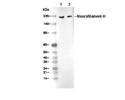 Neurofilament-H Antibody [P21P23] detects endogenous levels of total Neurofilament-H protein. Non-specific staining was observed in some tumor and normal epithelium by immunohistochemistry.
