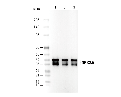 NKX2.5 Antibody [C20F24] recognizes endogenous levels of total NKX2.5 protein.