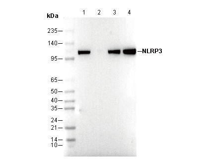 NLRP3は一部の細胞や組織で少量発現しています。WB実験を行う前に発現レベルを確認する必要があります。また、ポジティブコントロール(THP-1など)を選択して、同時に実験を行うことも推奨されます。